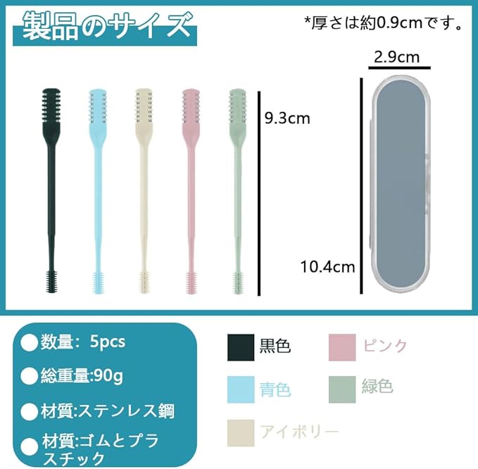 【商品サイズ】鼻毛ばさみのサイズは、製品本体の長さが9.3cm、幅が0.5cm、箱の長さが10.4cmです。 幅2.9cm。 総重量90g。