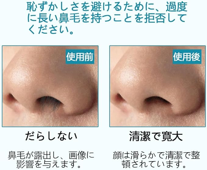 【製品の特徴】鼻毛はさみは両端のデザインで、上部のヘッドは痛みなく360 回転させて鼻の毛をカットでき、下部のヘッドは柔らかく、鼻腔の掃除が簡単です。