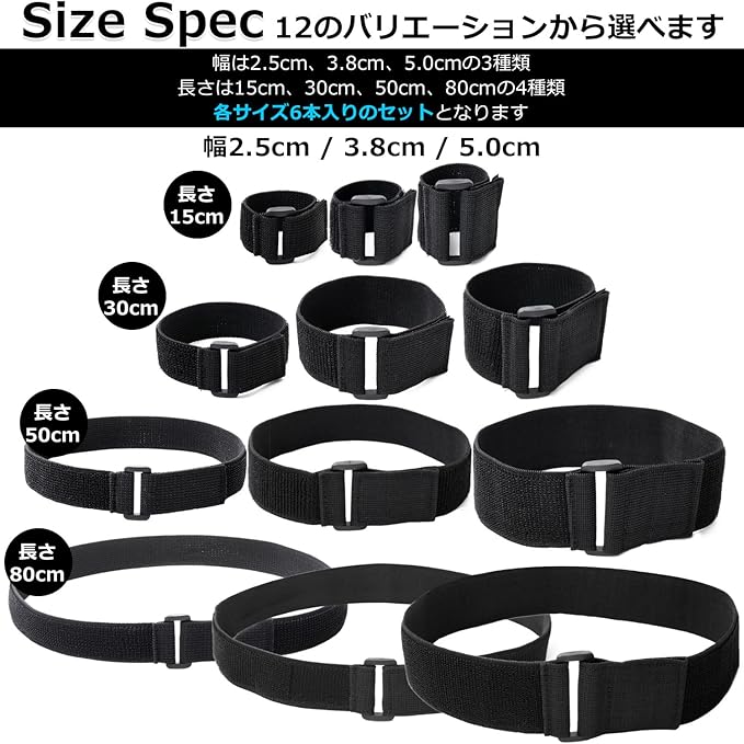 【 製品仕様 】 ●「製品サイズ」全長15cm 幅2.5cm ・ 全長30cm 幅2.5cm ・ 全長50cm 幅2.5cm ・全長80cm 幅2.5cmの4サイズ●「素材」混紡生地(ナイロン、ゴム素材) ●「カラー」ブラック ● ✔配達などの原因で未使用製品が破損や汚れなどがあった場合、ぜひAmazonカスタマーセンターよりご連絡ください。