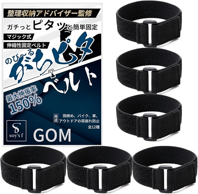 【収納のプロ監修】 SOY’S F ゴムバンド 結束バンド「伸縮性から非伸縮性まで全22バリエーション 」荷締めベルト 「荷物の固定等に」 (伸縮タイプ2.5cm 30cm6本)