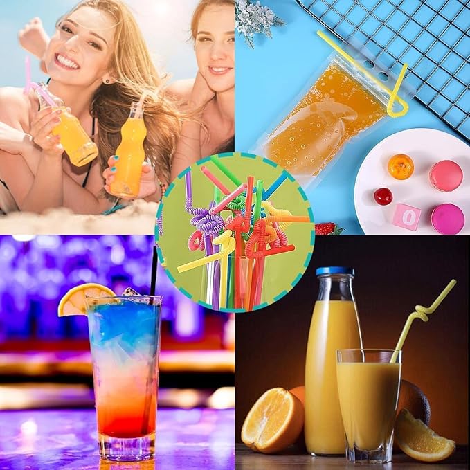 ストローカラーストロー 100本入 曲がる ストロー 使い捨てストローアートストロー ドリンクストロー 生分解性で環境に優しいストロー パーティー アウトドア