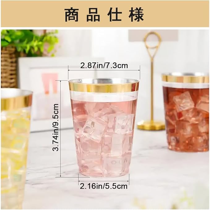 50個 プラスチックカップ 300ML 西洋料理 10oz 透明プラスチック 使い捨てハード(ローズゴールド)