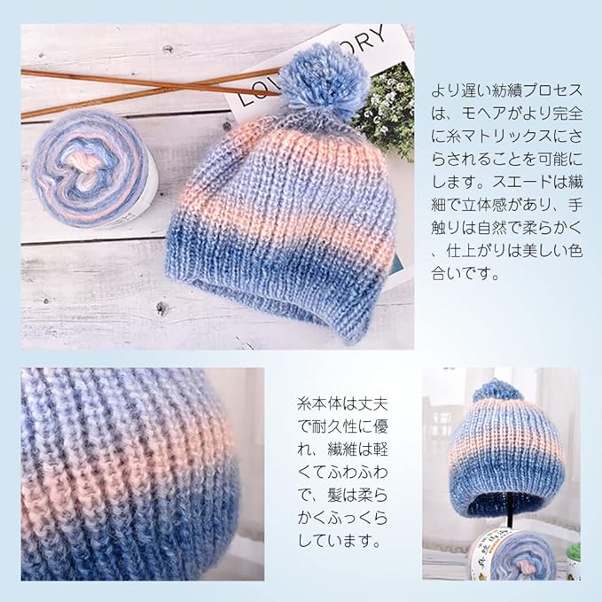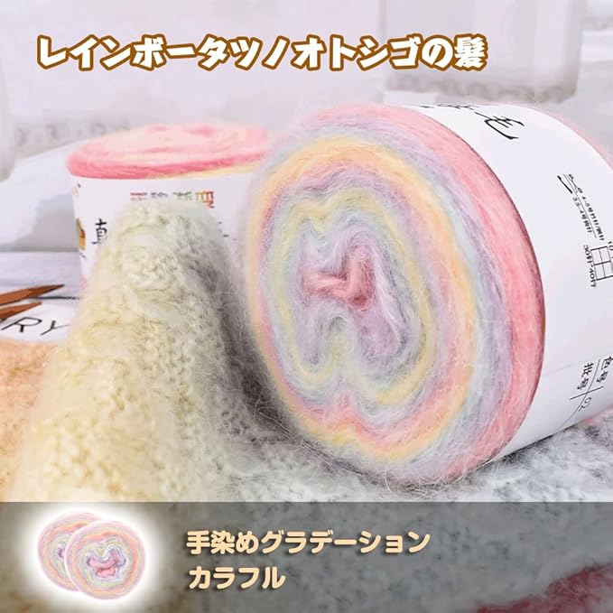 Kipzeui 毛糸 グラデーション毛糸 段染タイプ カラフル 馬海毛 柔らかい糸 セーターを編む約305m B#