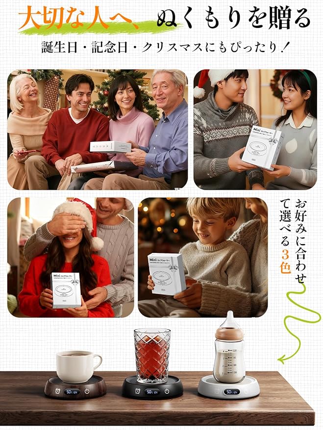 【ギフトにも最適 &心温まるサポート】保温コースターは実用性とシンプルで美しいデザインを兼ね備え、家庭でもオフィスでも活躍します。上品なパッケージはギフトにも最適で、自分用はもちろん、大切な人へのプレゼントにもぴったりです。クリスマスや誕生日などの特別な日には、心温まるギフトとして喜ばれます。Gimamaは「丁寧なサポートが最高のユーザー体験を生む」という理念のもと、写真付きの日本語取扱説明書を同梱し、初めての方でも安心して使用できます。万が一問題が発生した場合も、24時間以内に迅速に対応いたします。