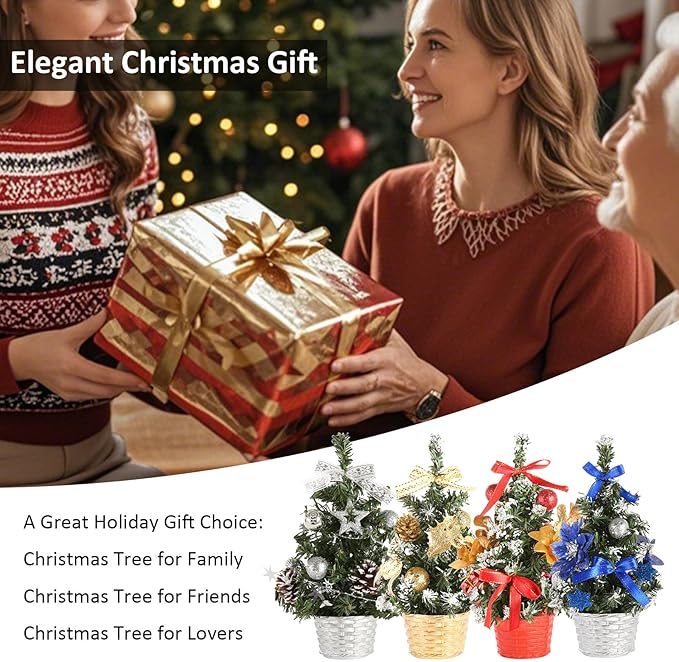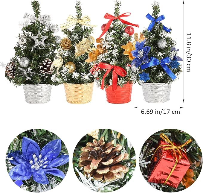 「綺麗なクリスマス飾り」:卓上クリスマスツリーはクリスマスをテーマし、赤と金と銀と青の4色がデザインされております。ミニクリスマスツリーには、カラーボールやリボン、ギフトボックス、リボン、星、造花などの飾りがたくさんついていて、可愛いです。もちろん、ご自身の好みに合わせて、装飾を追加する DIY 可能もあります。