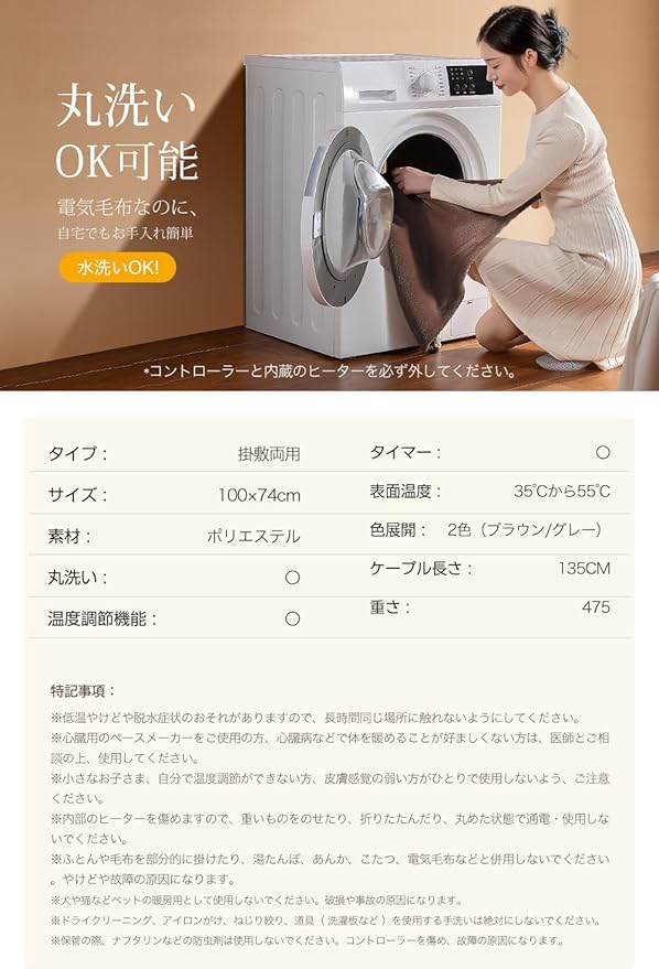 【丸洗い可能】自宅でもお手入れ簡単、手洗いも洗濯機洗いもOK。汚れたらヒーターとコードを外して、毛布のみ丸洗いできるのでいつでも清潔に使い続けます。【パッケージ内容】電気毛布(ヒーター&コントローラー付きのUSB電源コードは毛布内部に収納)、取扱説明書。【一年安心保証付き】万が一商品に不具合がある場合は、商品ページの販売店舗名をクリックして、「質問する」ボタンより店舗までご連絡いただければ迅速に対応いたします。