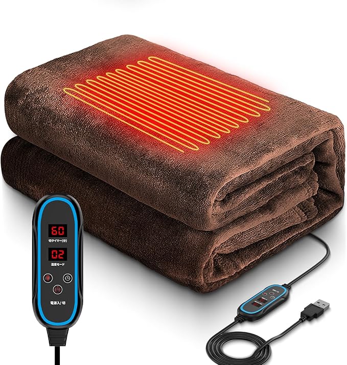 電気毛布 掛け敷き兼用 ひざ掛け 【3段階調温 LEDディスプレイ表示】 電気ブランケット タイマー付き 自動オフ 防寒対策 USB ブランケット 暖房毛布 ヒーター付き 電気ひざ掛け 肩掛け 丸洗い 大判 省エネ 暖房器具 オフィス キャンプ 車内泊 アウトドア テント泊 (ブラウン-本体のみ)