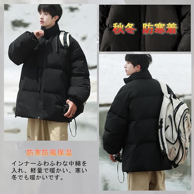 [Amyni] ダウンジャケット メンズ コート 冬服 中綿ジャケット 無地 厚手 防寒 防風 暖か メンズ 大きいサイズ ダウンコート 通勤 通学 登山 アウトドア 男女兼用 アウター