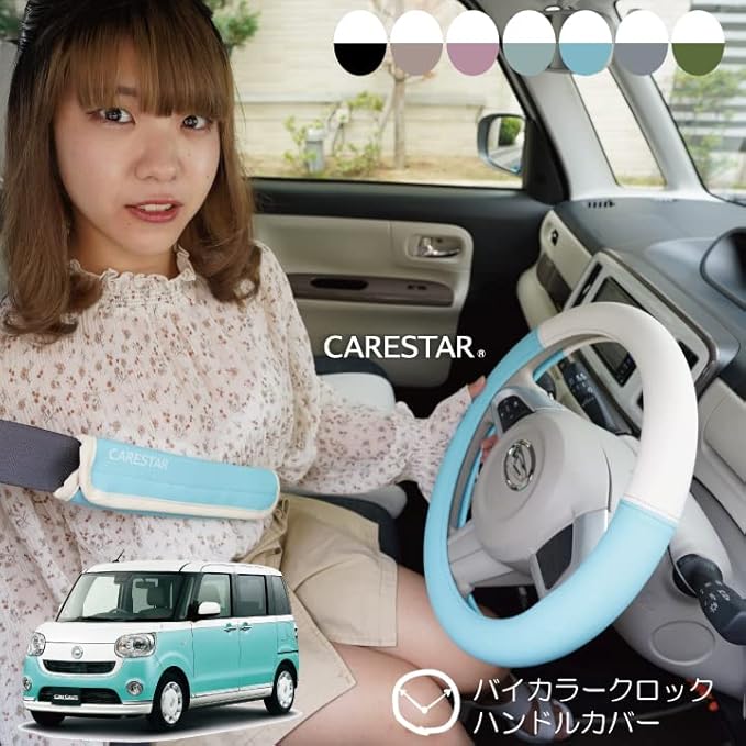 CARESTAR バイカラー レザー ハンドルカバー Sサイズ かわいい くすみカラー アースカラー ステアリング 軽自動車 普通車 適合多車種 タント ラパン ハスラー キャンバス アルト ジムニー ワゴンアール z-style ケアスター (ベージュ)