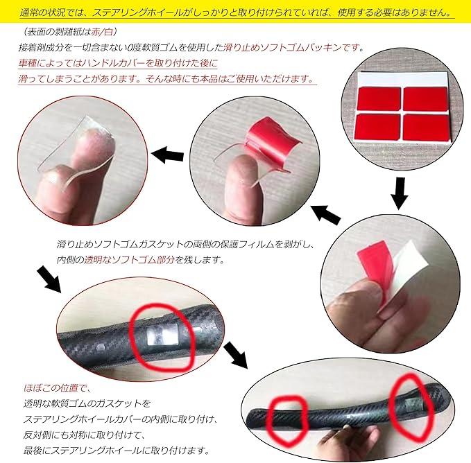 【取付簡単】取り付けは非常に簡単で、2つのハンドルカバーをステアリングホイールの側面にはめ込むだけ。 取り付けは2ステップ、分解は2ステップ。 女性や手仕事が苦手な方でも簡単に短時間で組み立てることができます。