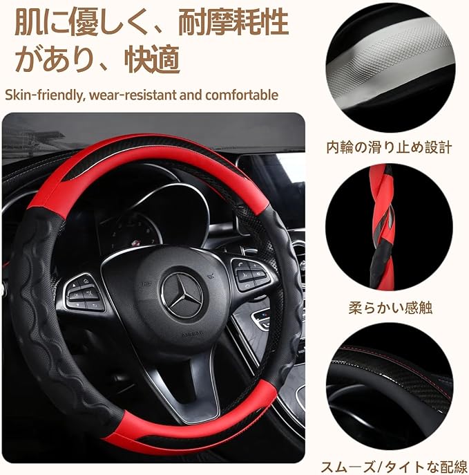 ハンドルカバー 車用 ステアリングカバー 適当な38 cm 汎用 軽自動車 普通車 おしゃれ 汚れ防止 滑り防止 オールシーズン対応 ハンドル 保護カバー カスタム 内装パーツ アクセサリー レッド