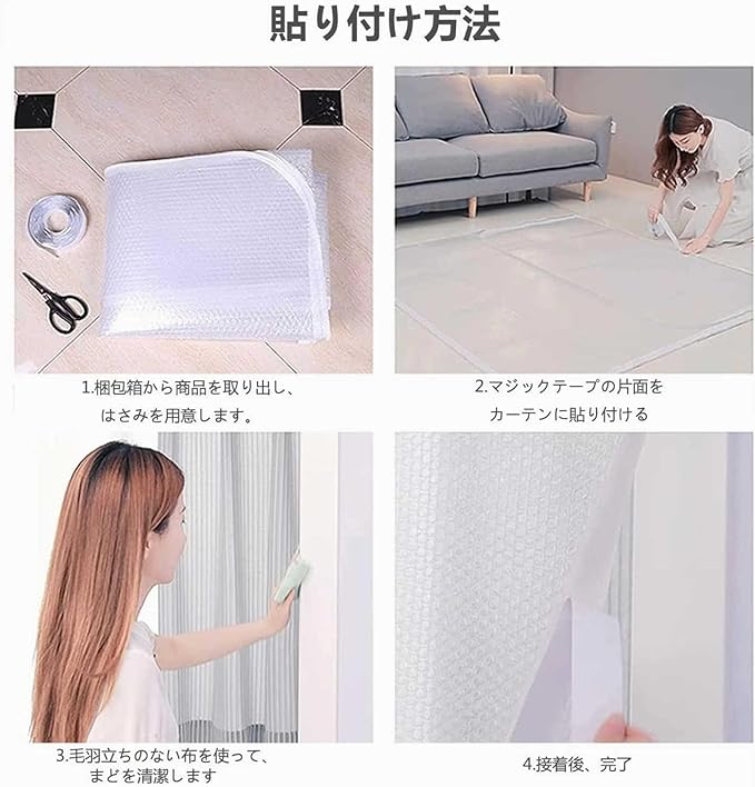 追加の自己粘着デザインにより、サーマルカーテンはドア/窓にしっかりとくっつきます。不要になった場合は簡単に削除できます。 (注: ウィンドウ フィルムは、金属フレームと塗装された木製フレームに貼り付けることができます。貼り付ける表面は、きれいで、平らで、滑らかで、塗料やほこりがない必要があります。)