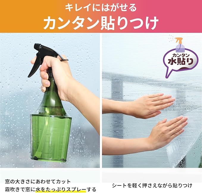 【水貼り】粘着テープを使わない水貼りタイプだから、きれいに貼れてきれいにはがせます!
