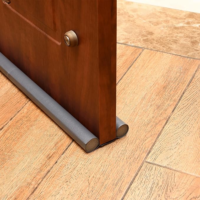 FINGOOO ドア 隙間 ガード 風防止 高さ3CM 人工皮革 クッション すきま 省エネ ストッパー 防音 防虫 長さ調整可能 (1PCS, グレー)