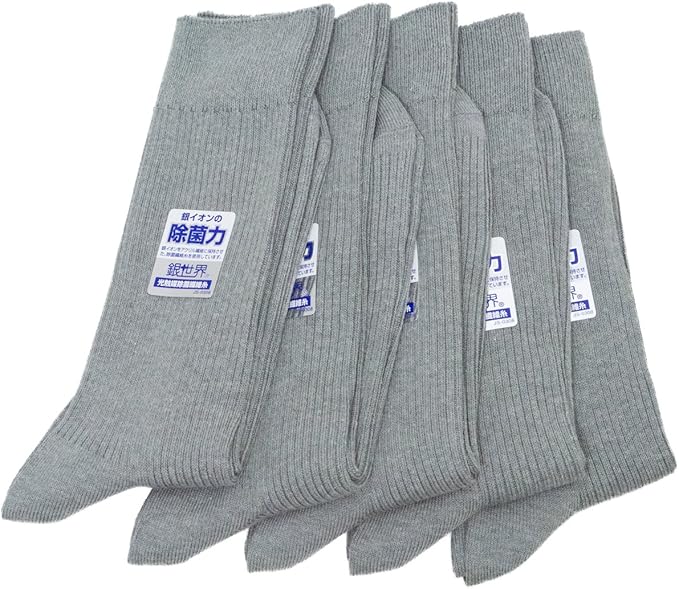 [レモコロ] 日本製 靴下 東洋紡 銀世界 除菌 ビジネス メンズ リブ柄 5足組 21-23cm 23-25cm 25-27cm 27-29cm 29-31cm