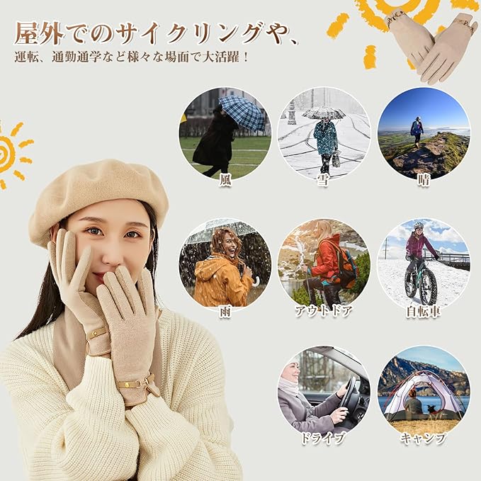 【幅広いシーンで使え】ファッション感満点の配色に加えて、どんなコーデにも合わせやすいレディース手袋。防寒・防風・保温機能が優れているので、冬の自転車、 ウォーキング、ランニング、通勤、通学 、お出かけの時などにのアウトドア活動では幅広くお使いいただけます。色合いも可愛いレディース手袋で、自分で使ってもいい、クリスマス、誕生日、お祝いのプレゼントにしてもいい。「結婚記念日 プレゼント」、「母親 誕生日プレゼント」、「結婚祝い プレゼント」、「米寿お祝い プレゼント」、「クリスマスプレゼント」などに最も良い選択です。