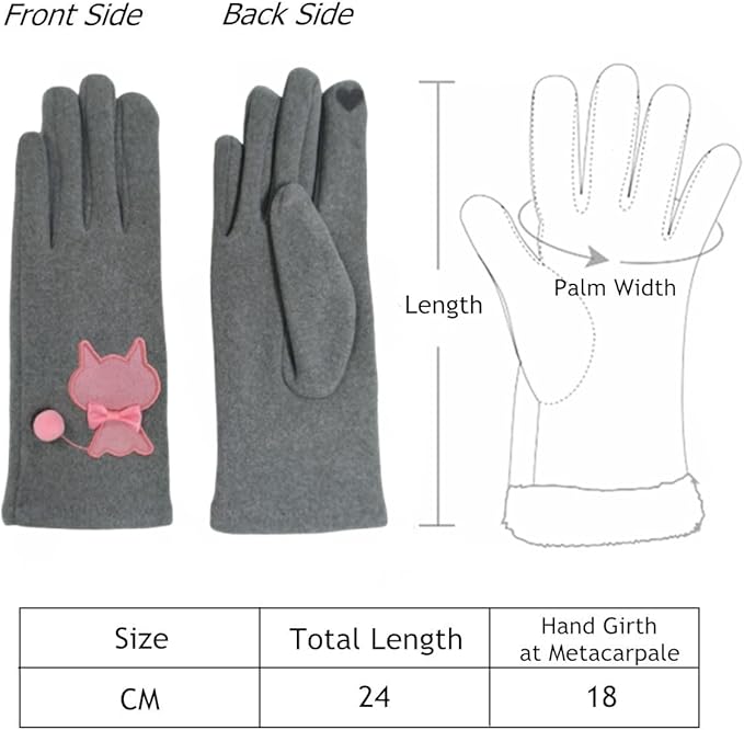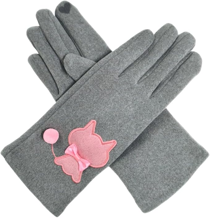 [Morices] レディース 手袋、可愛い 猫の飾り 裏起毛 グローブ 女性向け 防風 暖かい 防寒手袋、柔らかい スマホ対応 冬の手袋 アウトドア 登山 通勤 自転車 日常の運転 冬の必需品