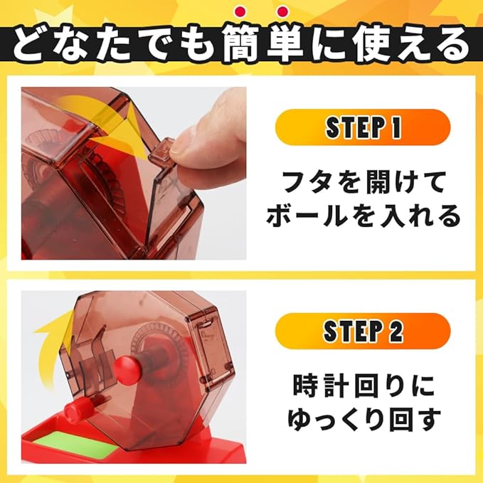 【セット内容】ビンゴマシーン 1点 番号付きボール 1~75(予備5個) ボールトレイ 1点 ビンゴカード 6枚 【サイズ(約)】マシーン:21cm 18cm 9.5cm 【カラー】レッド 【材質】プラスチック