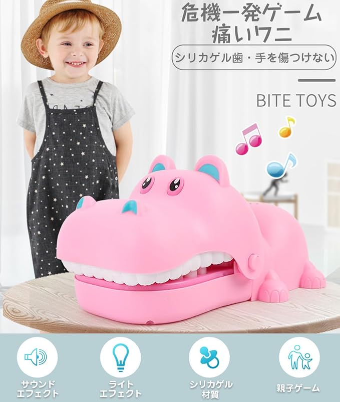 痛いワニ 危機一発ゲーム 痛いカバ ロシアンルーレット おもちゃ くじ引き 口歯咬合 カバ ワニワニパニック 忘年会 定番ゲーム クリスマス 新年 パーティ (ピンク)