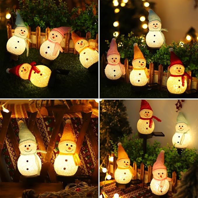 クリスマス ソーラーライト 雪だるま 4点入り クリスマス 飾り ガーデンライト 屋外 おしゃれ イルミネーションライト 埋め込み式 自動点灯 消灯 省エネ 照明飾り 置物 クリスマスグッズ christmas decorations outdoor