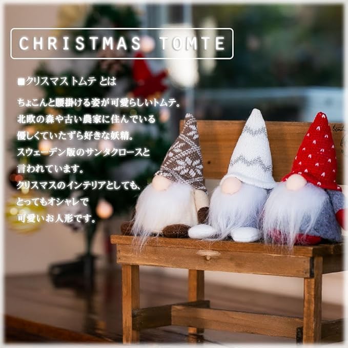 [ファンシー] bts-01 トムテ クリスマス 北欧の妖精 サンタクロース オシャレ インテリア クリスマスオーナメント お部屋のアクセント 飾り ユールトムテ3人(トムテ1組 椅子1組 セット品)