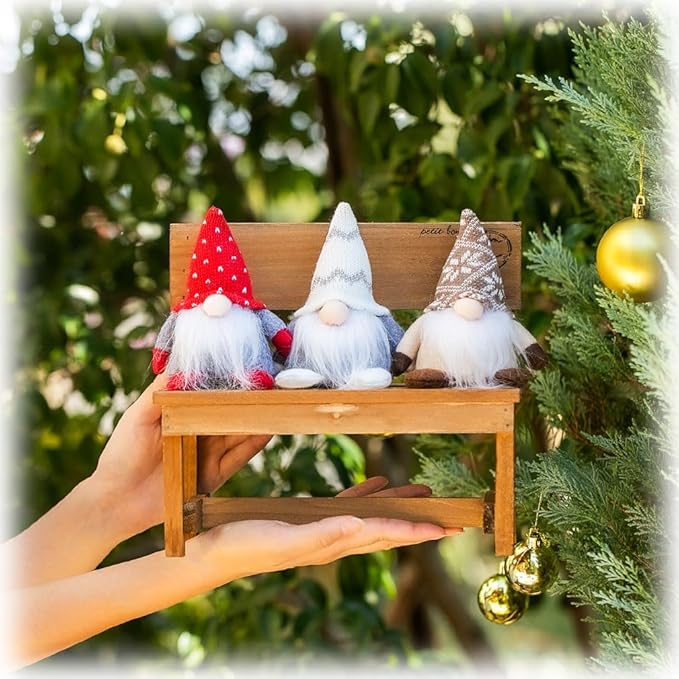 ナチュラルウッドに腰かけた呑気なトムテの登場です。トムテが3体仲良く並んで座っています。このセットはギフトショップ デバリエ&ファンシーだけのオリジナル商品です。ラッピングを施してお届けいたします。人気上昇中のトムテです。ノームやニッセ、トントゥ等とも呼ばれる北欧スエーデンのクリスマスの定番です。 フサフサの髭とトンガリ帽子が何とも言えずに可愛らしいクリスマスオーナメントです。