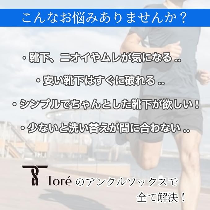 ✅【毎日履くものだから ”ちょうどいい” Tor のアンクルソックス】 「抗菌防臭・つま先、かかと補強」はもちろん、 スポーツやランニング時の足への負担を軽減するために、中厚生地に仕上げた 『Tor のアンクルソックス』。 高価格帯に負けない、品質と快適さ。 ”ちょうどいい”という選択。