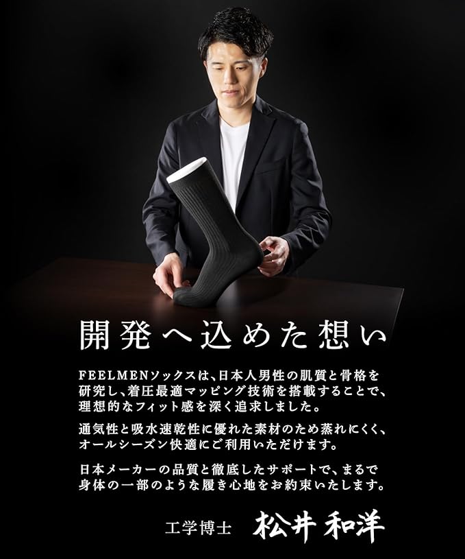 ✅【 究極の履き心地/24-28cm対応のフリーサイズ 】2.32倍の高伸縮性!シンクロアナトミカルフィットx3Dフィット圧最適マッピング技術で、最強の履き心地を生み出しました(紳士靴下/メンズ用/ビジネスソックス/黒)。