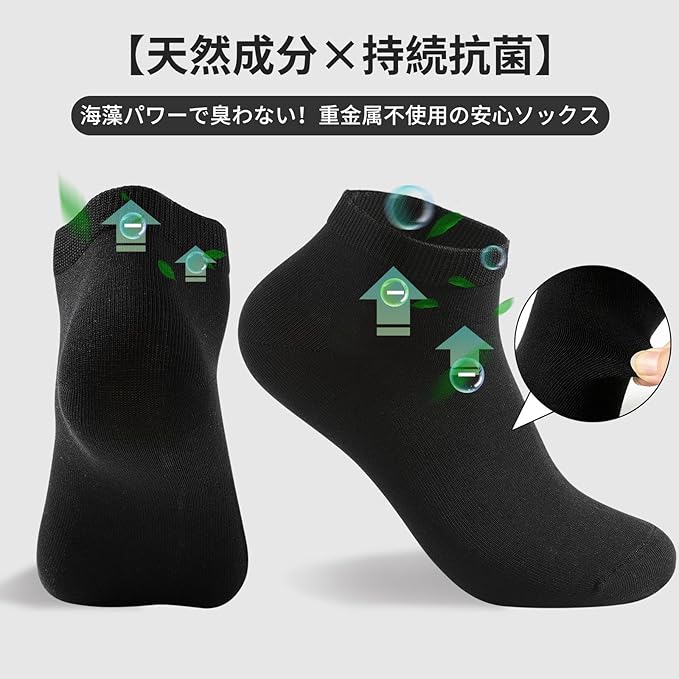 [BooGedada] [瞬間消臭] 臭わない・ムレ軽減|メンズ消臭くるぶしソックス 5足組|24-28cm実寸フィット|通学通勤に最適 通気性&吸湿性に 抗菌防臭 ギフトボックス付 靴下 メンズ 夏