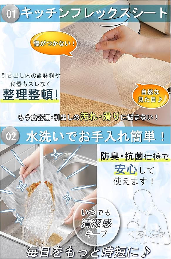 ✅万能 キッチンフレックスシート✅【食器棚、引出し、リンビング どこでも使える便利グッズ】ハサミで切ってお好みの大きさへ調整可能です。