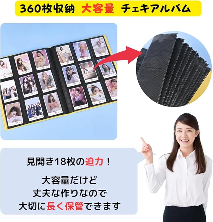 【 360枚収納 大容量 チェキアルバム 】1ページあたり9枚、見開きで18枚収納できます。40ページの大容量 チェキ アルバムです。