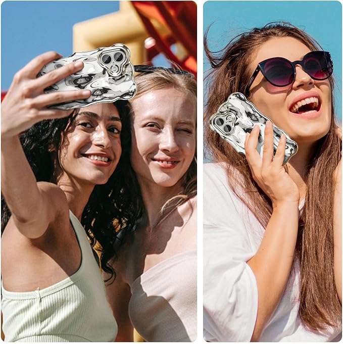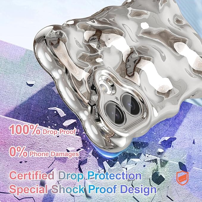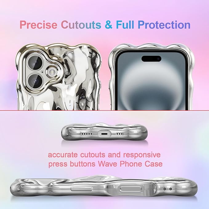 UEEBAI 対応 iPhone 16 用の ケース ウェーブデザイン スマホケース 可愛い 人気 おしゃれ ケース 薄型 軽量 グリッター 光沢カバー 耐衝撃 波型 バンパー スマホケース - シルバー