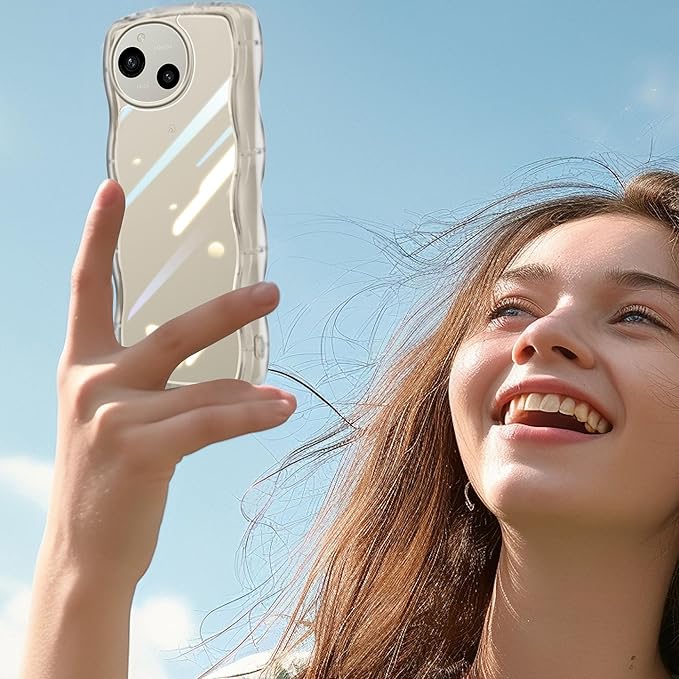 AQUOS R9/R10 かわいい ケース クリア 波状フレーム うねうね 耐衝撃 SH-51F/SH-51EE スマホケース 透明 滑り止め 人気 可愛い 女性用 女子向け アクオス R9/R10 カバー 落下防止 ワイヤレス充電対応 (クリア)