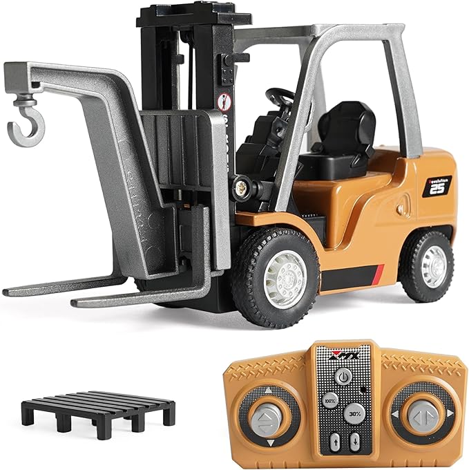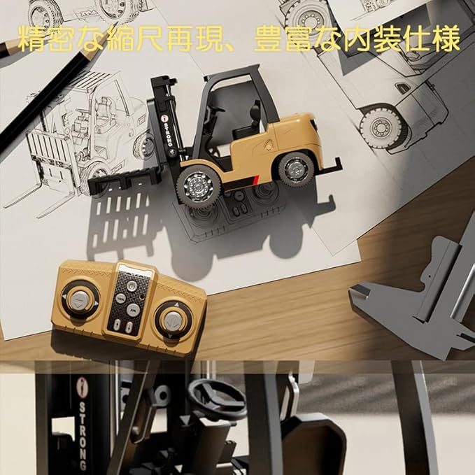 【2-in-1 クレーン&フォークリフトモード】1:64スケール合金製ラジコン(全長約11cm 幅約4cm)は付属アタッチメントでクレーンとフォークリフトに変形。2.4GHzリモコンで6種類の精密操作が可能:前進/後退・左右旋回・荷物昇降・丸太や小箱を押す動作。お子様の好奇心を刺激し、大人も満足するホビー級のリアリズム。