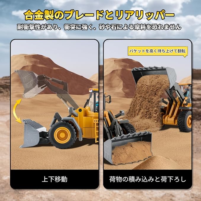 iKing ブルドーザー ラジコン おもちゃ - 子供向け ラジコンカー 建設車両 合金 重機 エンジニア車両 2.4GHz 1:24 9CH リモコンカー rc car 砂浜 砂場用 室内 室外遊び 車 玩具 4歳 5歳 6歳 7歳 男の子 プレゼント