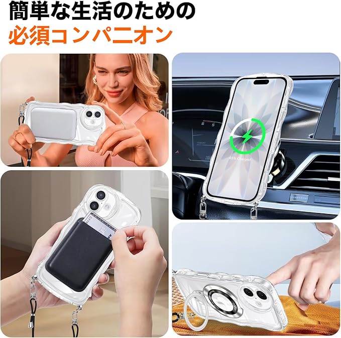 iPhone 17 Pro ケース クリア TPU なみなみ 耐衝撃 MagSafe対応 アイフォン17 pro 携帯カバー ストラップ穴付き ショルダー 肩掛け 縄掛け 紐付き 斜めがけ ストラップ着脱可 韓国 可愛い おしゃれ 全面保護