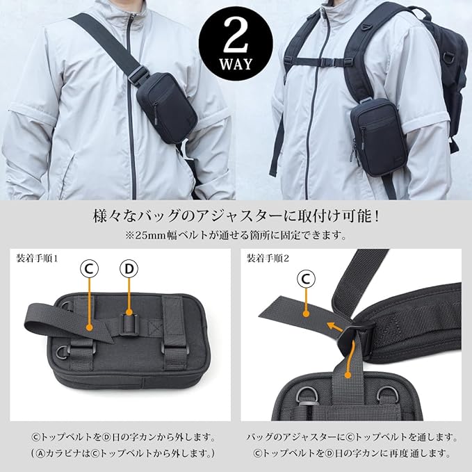 スマホポーチ リュック ショルダーベルト ウェスト 撥水 2台収納 (ブラック)