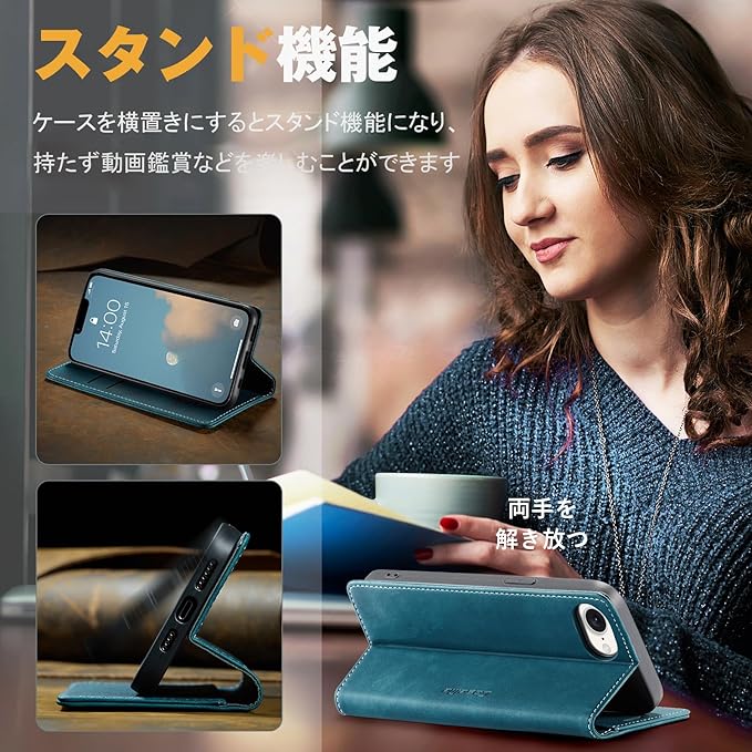 【全面保護】 手帳型ケースを取り付けると、電話の本体がカバーされ、スクリーンと背面が保護され、耐衝撃と油污の付着が軽減されます。