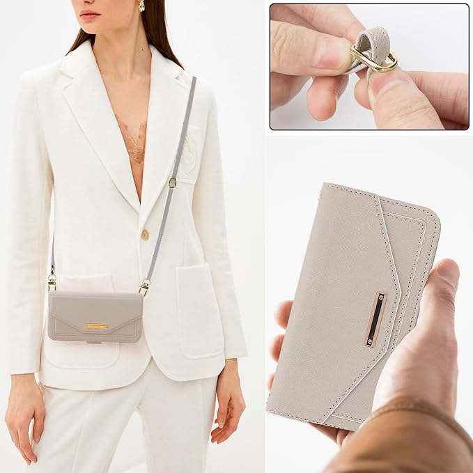iPhone 16e 用 ケース 手帳型 ショルダー スマホケース いphone16e 携帯ケース 肩掛け 斜めがけ アイフォン16e カバー 財布型 あいふおん16e カード収納 小銭入れ ミラー付き 女性 鏡付き おしゃれ PUレザー 横置ステント機能 マグネット式 折りたたみ 全面保護 耐衝撃 人気 ライトグレー