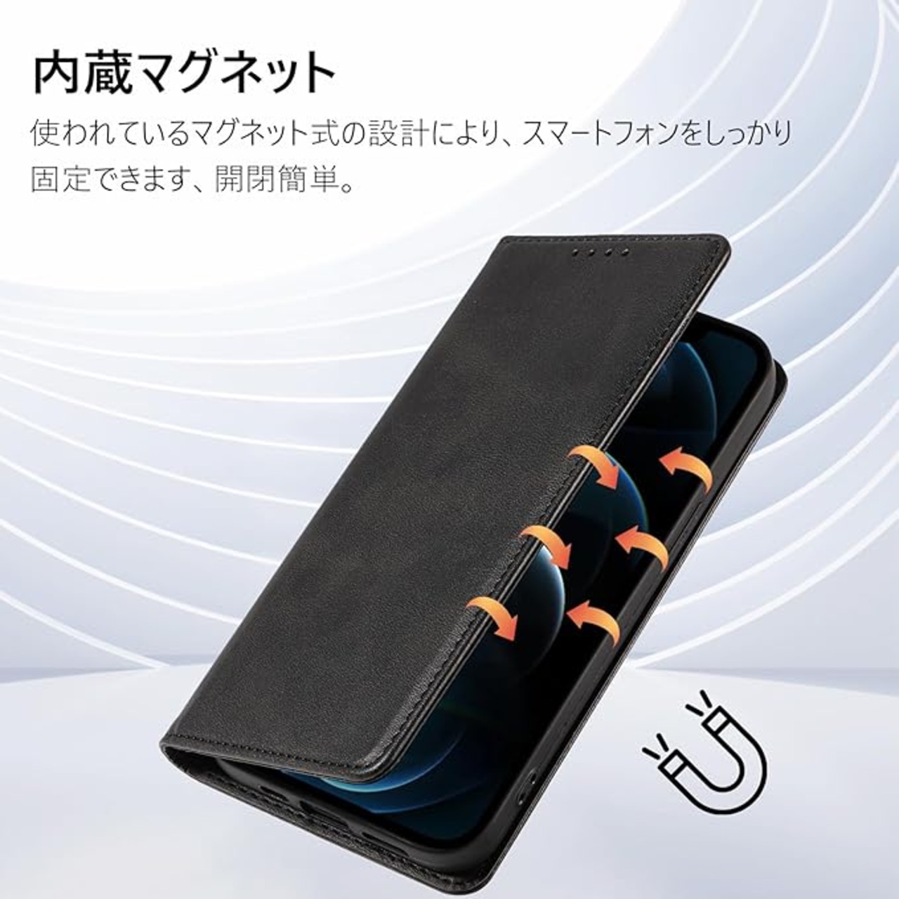 【多重保護】アイフォン12 ケースの四隅にラウンド処理がされており、衝撃吸収機能あり。内部のプラスチックはTPUソフトケースで、破損することはありません、取り付け・取り外しが簡単で、スマホ本体へのスレ傷が防止できます、衝撃から本体を360 保護します。使われているマグネット式の設計により、スマートフォンをしっかり固定できます、開閉簡単。