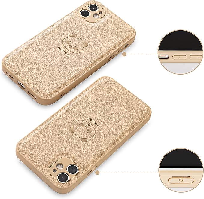 Panda Baby iPhone 12 レザーケース 本革に近い質感 (パープル)