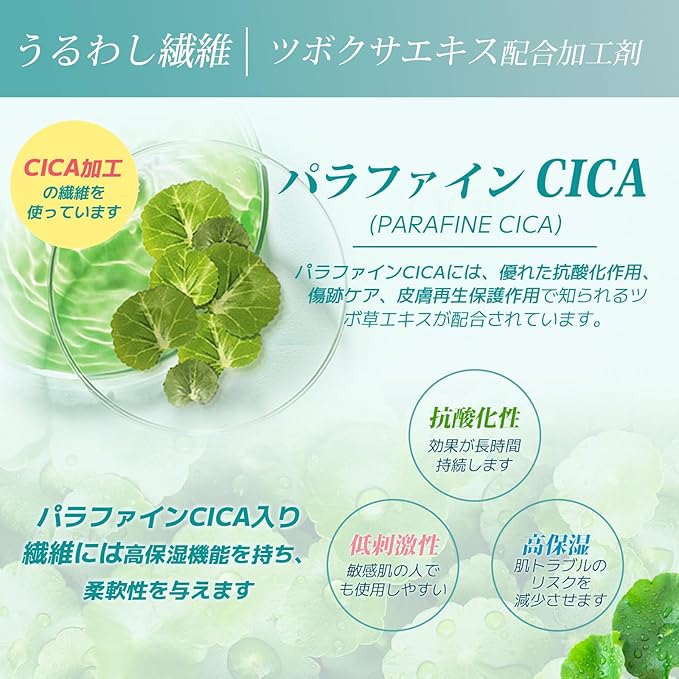 【カシミヤのような超柔か水晶マイクロ CICA】表側水晶マイクロ生地がパラファインCICA加工を施した。そのため、優れた高保湿、防静電、抗菌防臭、皮膚再生保護の効果があります。やわらかな風合いとなめらかな肌ざわりが最高です!