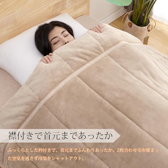 【襟付きでより暖かい 冬用毛布】また、襟付きなので外から冷たい空気を遮断して中の温かい空気を逃しない。体だけでなく首元もふんわり暖かい!