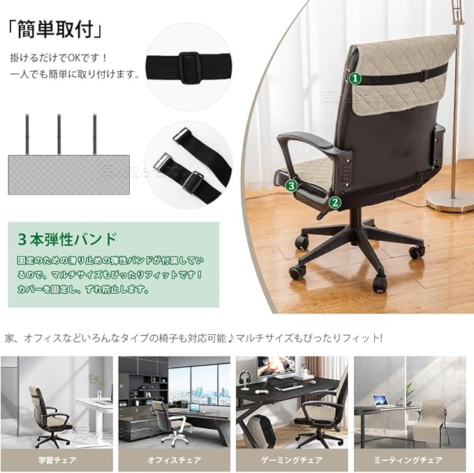 ✿滑り止め:固定のための滑り止めの弾性バンドが付属しているので、マルチサイズもぴったりフィットです!カバーを固定し、ずれ防止します。 ✿家具に合わせやすい:おしゃれで素敵なチェアカバー、お部屋の家具の色味に合わせてスッキリしたイメージやナチュラルな雰囲気をプラスします。このカバーは複数のデザインのチェアとよく合い、気軽に選ぶことができます。