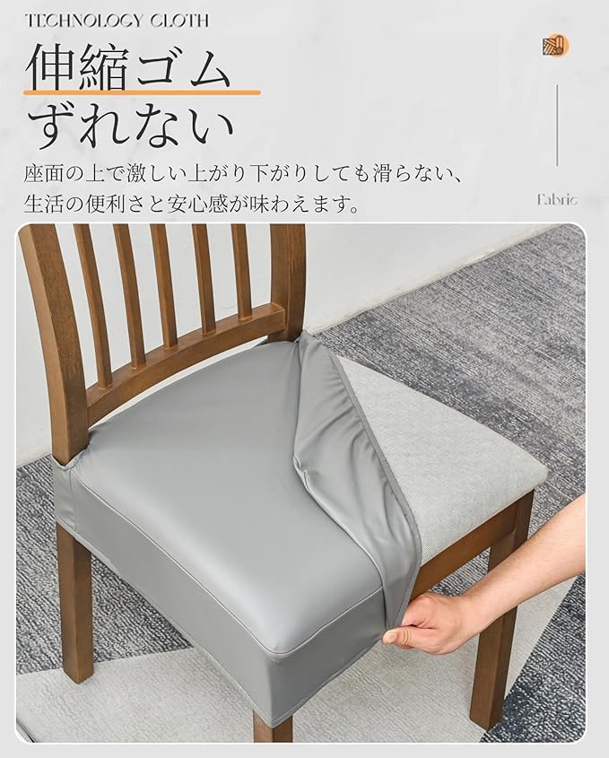 [JUNA KOOK]チェアカバー 椅子カバー 座面のみ PUレザー イスカバー かぶるだけ 撥水 ストレッチ 伸縮素材 取付簡単 ずれにくい ダイニングチェアカバー デスクチェアカバー オフィスチェアカバー 学習椅子 おしゃれ 引越し 新居 インテリア (グレー, 1枚)