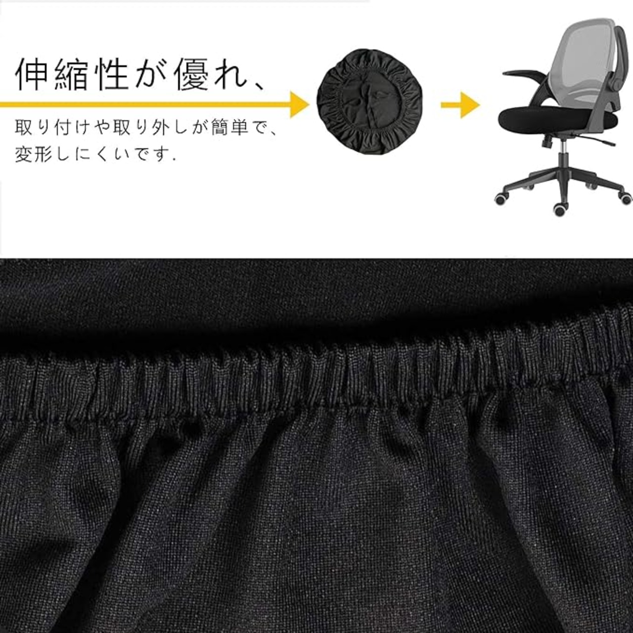 チェアカバー オフィス椅子カバー 事務椅子 伸縮素材 オフィスチェア カバー (ブラック-座面カバー, M)