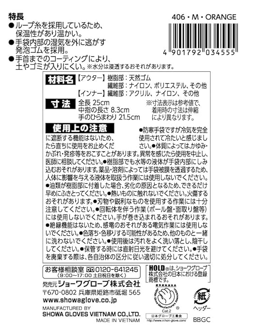 【防寒手袋】 ショーワグローブ(Showaglove) No.406 防寒HOLD(ホールド) Mサイズ 1双