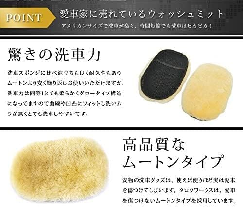 TARO WORKS 洗車 スポンジ 洗車ミット ムートンファイバー 手洗い ウォッシンググローブ 2個セット