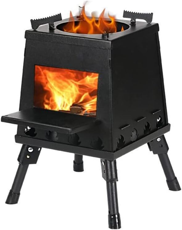 【安定性&耐久性抜群】キャンプストーブは高級炭素鋼でできており。厚さ1.5mmの素材と安定した構造により、体重50kgの大人でも耐えられる大きな耐荷重を備えている! 調節可能なポットホルダー付きで、より安心して便利にお使いいただけます。キャンプ用薪ストーブは、耐久性のある使用のために厚みがあり、高温と低温に耐えることができ、海や釣りなどでも使える防錆加工が施されています