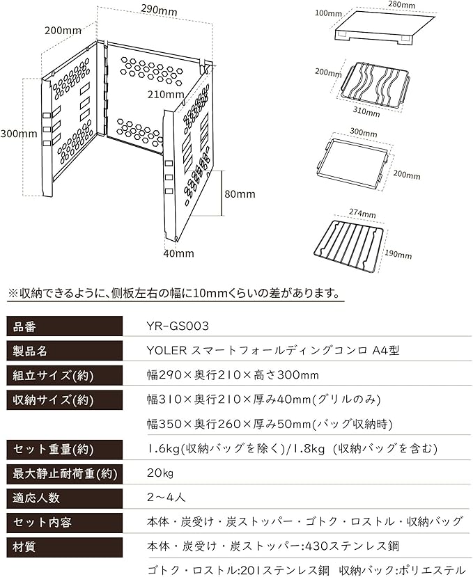 ヨーラー(YOLER) スマートフォールディングコンロ A4型 焚き火台 オリジナル 自由調節 2-4人用 キャンプ初心者向 GS003
